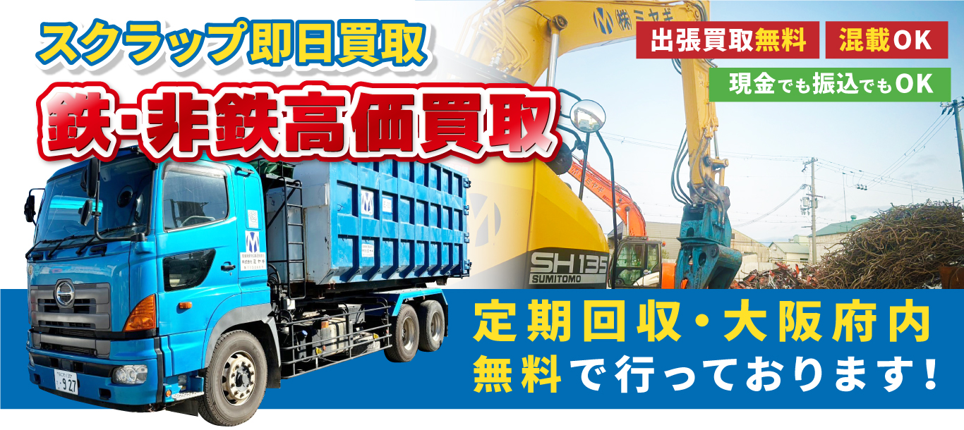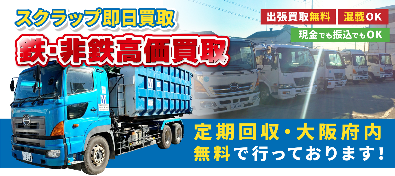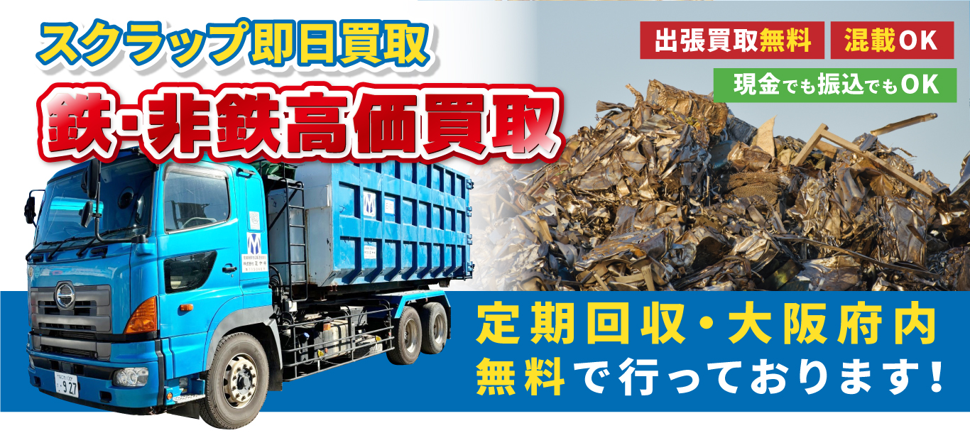 大阪市内なら大量のスクラップでも出張費用無料で安心・安全・迅速に買取致します。